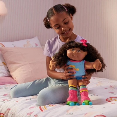 Skate the day away as you take the Oath of Adoption with the world famous 14-inch Cabbage Patch Kids. Each Kid wears a new trendy fashion ready for fun AND for your love. These adorable fashions are removable and also come with cute accessories. Get ready to have a roller skate party with this featured Cabbage Patch Kid, including her skates that really spin! You will love her adorable skate themed fashion and her spinning skates! True to tradition, every Cabbage Patch Kid has the signature baby powder scent you know and love. Each comes with an official birth certificate and adoption papers right from Babyland General Hospital showing a unique name and birthday – just like you. Take the Oath of Adoption to join the Cabbage Patch Kids family today!