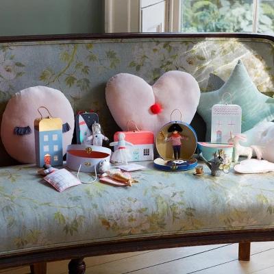 This is an amazing gift for a little one to take on their travels or play with at home. Featuring a mini suitcase, beautifully illustrated to look like a little house, with a leather handle and metal clasp. Inside is the adorable Lila cotton doll, stylishly dressed with a green tulle skirt, and her cotton quilt and pink velvet pillow ready for bedtime.