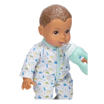 Your little one will adore doubling baby doll fun time with their very own set of Perfectly Cute 14” My Sweet Baby Doll identical TWINS! Dolls comes delightfully dressed in matching dinosaur printed onesies in two color ways. Each My Sweet Baby twin features a soft’n’cuddly body with easy-to-wipe-clean, durable hard plastic arms, legs, & head. Coordinating pacifiers, bottles, and pacifier clips also included! They’re the identically sweet addition to every baby doll collection!