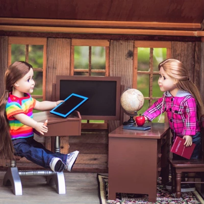 - 15 piece school room playset perfectly sized for 18 inch American Girl Dolls