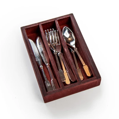 Real metal utensils are beautifully balanced and articulated in a timeless high quality shiny silver color plating to fit 18 inch dolls. Service for four includes a set of knives, spoons and 4-tine forks packed in a wooden tray with a mahogany finish. Compatible for use with American Girl Dolls, Exclusively made by The Queen’s Treasures, offering the highest quality 18 inch Doll Furniture, 18 inch Doll Clothes, 18 inch Doll Shoes & 18 inch Doll Accessories!